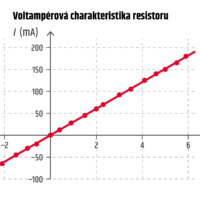 \[R=\frac{U}{I}=\frac{5\ \mathrm{V}}{0{,}1\ \mathrm{A}}=50\ \mathrm{\Omega}\]Převrácenou hodnotou odporu je elektrická vodivost \(G=1/R\), jednotkou vodivosti je siemens S.